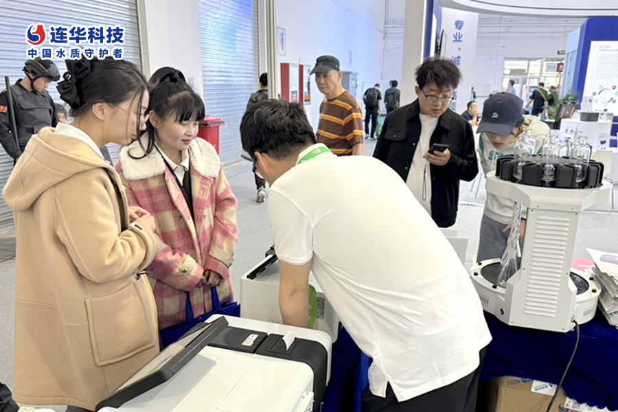 展位上,連華科技的紫外可見(jiàn)分光光度計(jì)LH-S700、便攜式多參數(shù)水質(zhì)測(cè)定儀LH-E200等明星產(chǎn)品整齊陳列。技術(shù)人員現(xiàn)場(chǎng)操作設(shè)備,清晰展示儀器在精度、穩(wěn)定性及操作便捷性上的優(yōu)勢(shì)。面對(duì)觀眾的技術(shù)咨詢,工作人員耐心解答,從儀器原理到應(yīng)用場(chǎng)景,專業(yè)術(shù)語(yǔ)運(yùn)用自如,展現(xiàn)出深厚的技術(shù)功底。