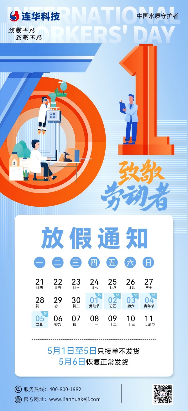 您好!在這繁花似錦、綠草如茵的美好時(shí)節(jié),我們即將迎來一年一度的國(guó)際勞動(dòng)節(jié)。在此,連華科技全體員工向您致以最誠(chéng)摯的節(jié)日問候,衷心祝愿您和您的家人勞動(dòng)節(jié)快樂,假期愉快!