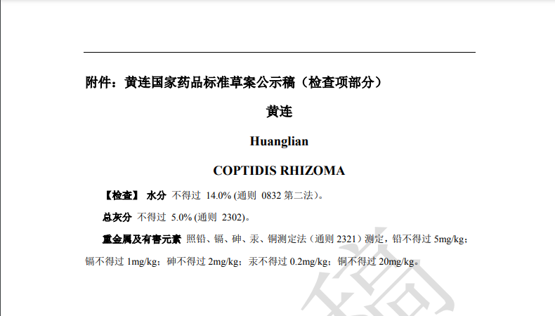 隨著《中藥法典》標準修訂進程的推進,藥典委官網(wǎng)近期陸續(xù)發(fā)布多個標準公示,均與中藥重金屬及有害元素控制相關。其中,“關于黃連國家藥品標準草案的公示”、“關于艾葉國家藥品標準草案的公示”、“關于川芎國家藥品標準草案的公示”,對相關檢測項擬進行修訂。公示期為30天。通知表示,若有異議,可及時在線反饋,并附相關說明、實驗數(shù)據(jù)和聯(lián)系方式。