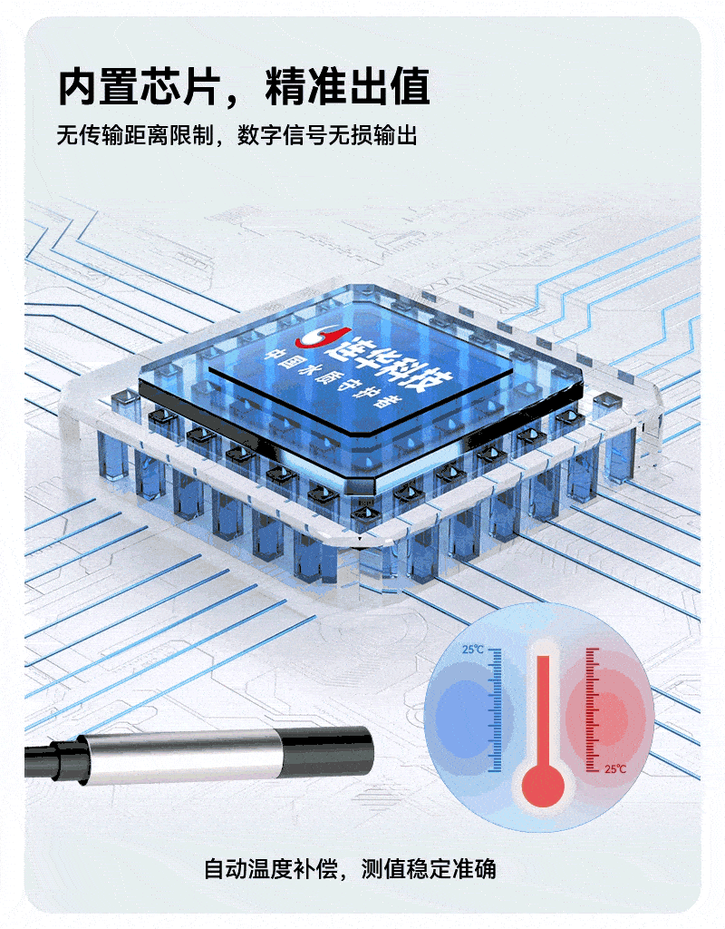 2、采用數(shù)字電極技術(shù),突破傳輸距離限制,默認(rèn)5米線長(支持定制),結(jié)合自動(dòng)溫度補(bǔ)償功能,確保戶外檢測信號穩(wěn)定、測量精準(zhǔn);